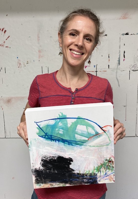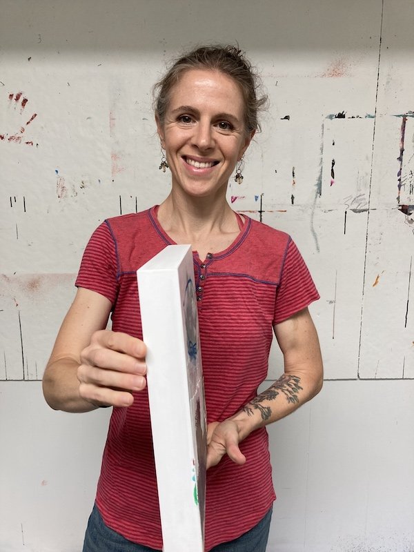 This is an original mixed media painting, signed on the front and hand labeled on the back by the artist. It features a range of materials: paper collage, acrylic, watercolor, pastel, ink, and graphite on a hardwood panel. The panel is made of basswood and is braced with a basswood cradle. This type of painting support has been valued since the 14th century for its strength and smooth surface.