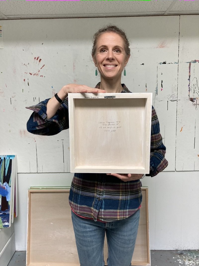 This is an original oil and acrylic painting, signed on the front and hand labeled on the back by the artist.