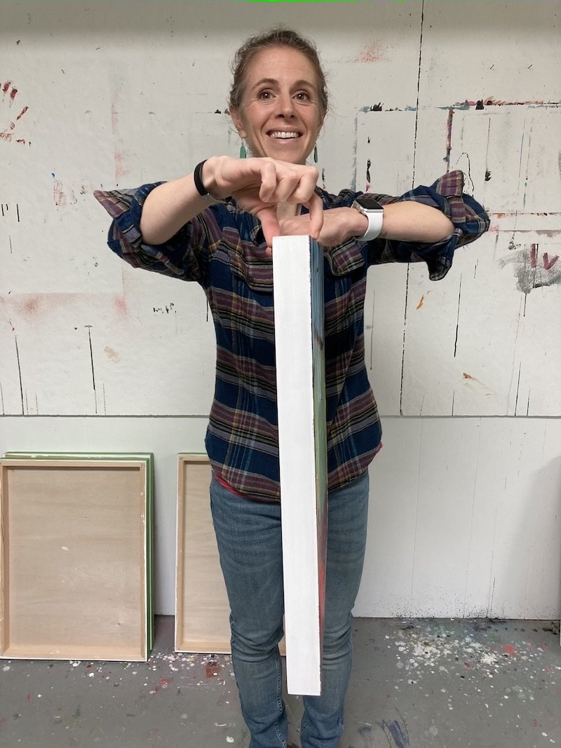 This is an original oil and acrylic painting, signed on the front and hand labeled on the back by the artist.